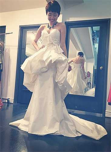 Tóc Tiên trong trang phục váy cưới cách điệu.