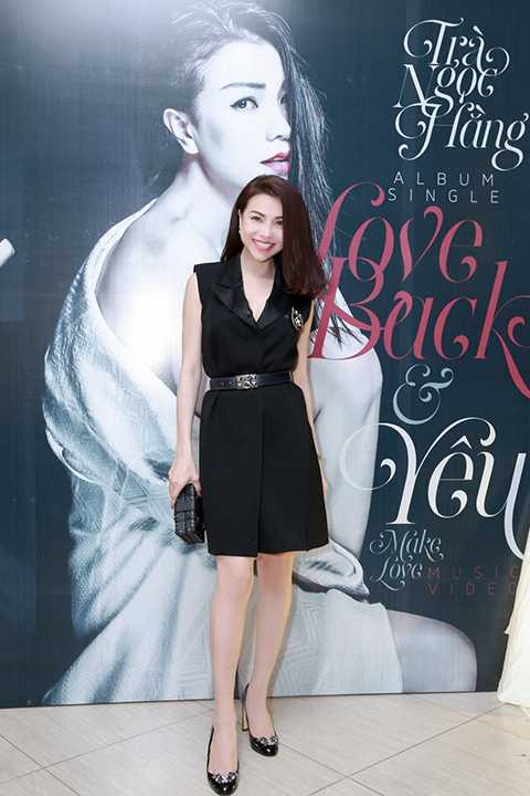 Đến chúc mừng cô bạn thân ra mắt sản phẩm âm nhạc mới, "nữ hoàng nội y" đã không ngần ngại có những cử chỉ thân mật với Trà Ngọc Hằng trước sự chứng kiến của truyền thông. Xuất hiện với trang phục trắng giản dị nhưng Ngọc Trinh vẫn toát lên được vẻ quyến rũ và gợi cảm khó tả.