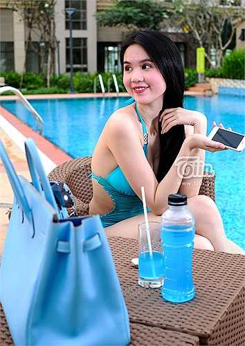 Sở hữu vóc dáng nuột nà đáng mơ ước, chẳng lạ khi Ngọc Trinh luôn khéo khoe vẻ quyến rũ bằng những shoot hình kiệm vải bên bể bơi.