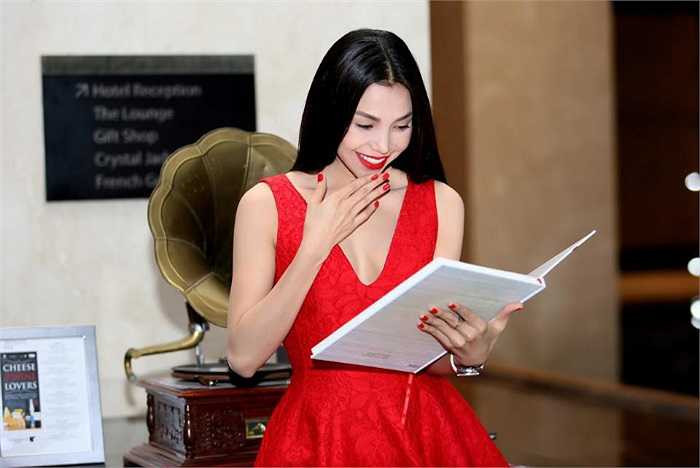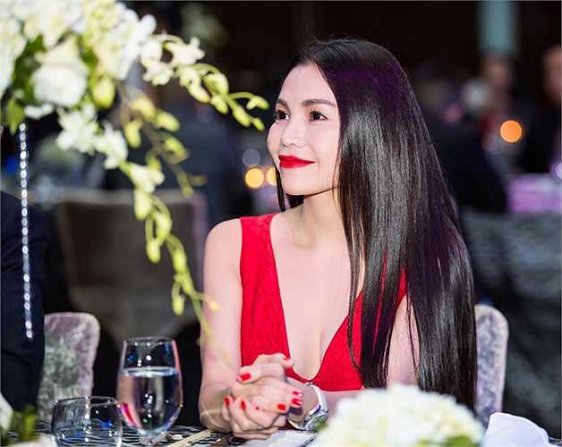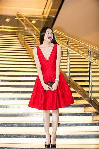Trà Ngọc Hằng váy đỏ gợi cảm, đẹp mắt khi tham dự sự kiện.