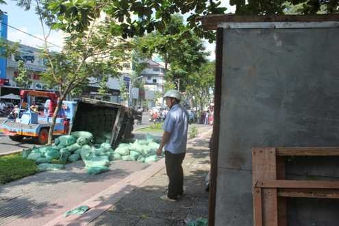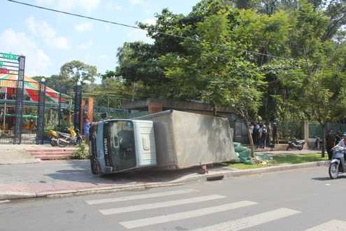 | Toàn thân xe tải nằm gọn trên lề đường |