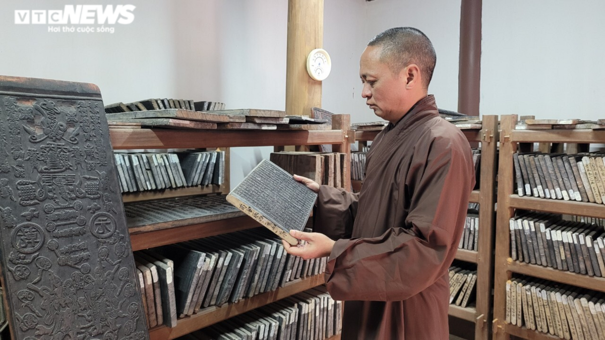Kho mộc bản nằm ở khu hậu viện của chùa. Đặc biệt là những tấm gỗ thị dùng để khắc kinh đều rất bền, đẹp, không bị mối mọt, dù không dùng một loại thuốc bảo quản nào. Kinh được khắc nổi bằng chữ Hán, nét chữ tinh xảo, đến nay vẫn còn rất sắc nét.