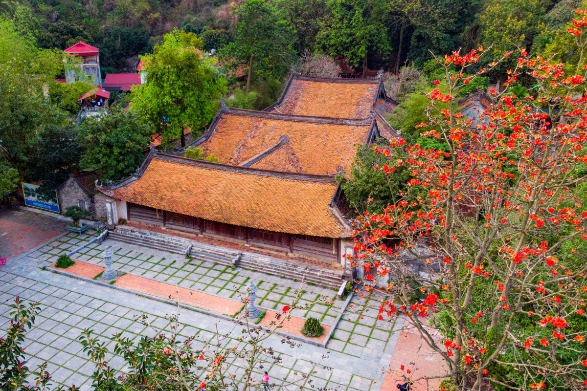 Cứ vào độ tháng 3, những cây hoa gạo ở Chùa Thầy (xã Sài Sơn, huyện Quốc Oai, Hà Nội) lại bung nở, làm nên nét đẹp riêng cho ngôi chùa.