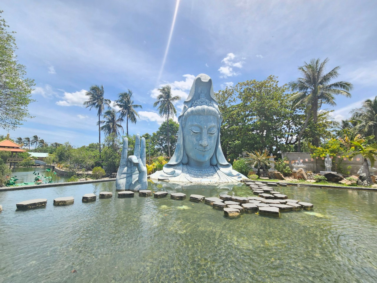 Ngoài tượng Phật trôi dạt từ biển, trong chùa còn có bức tượng Phật nửa chìm nửa nổi trong hồ nước được dựng ở khuôn viên.