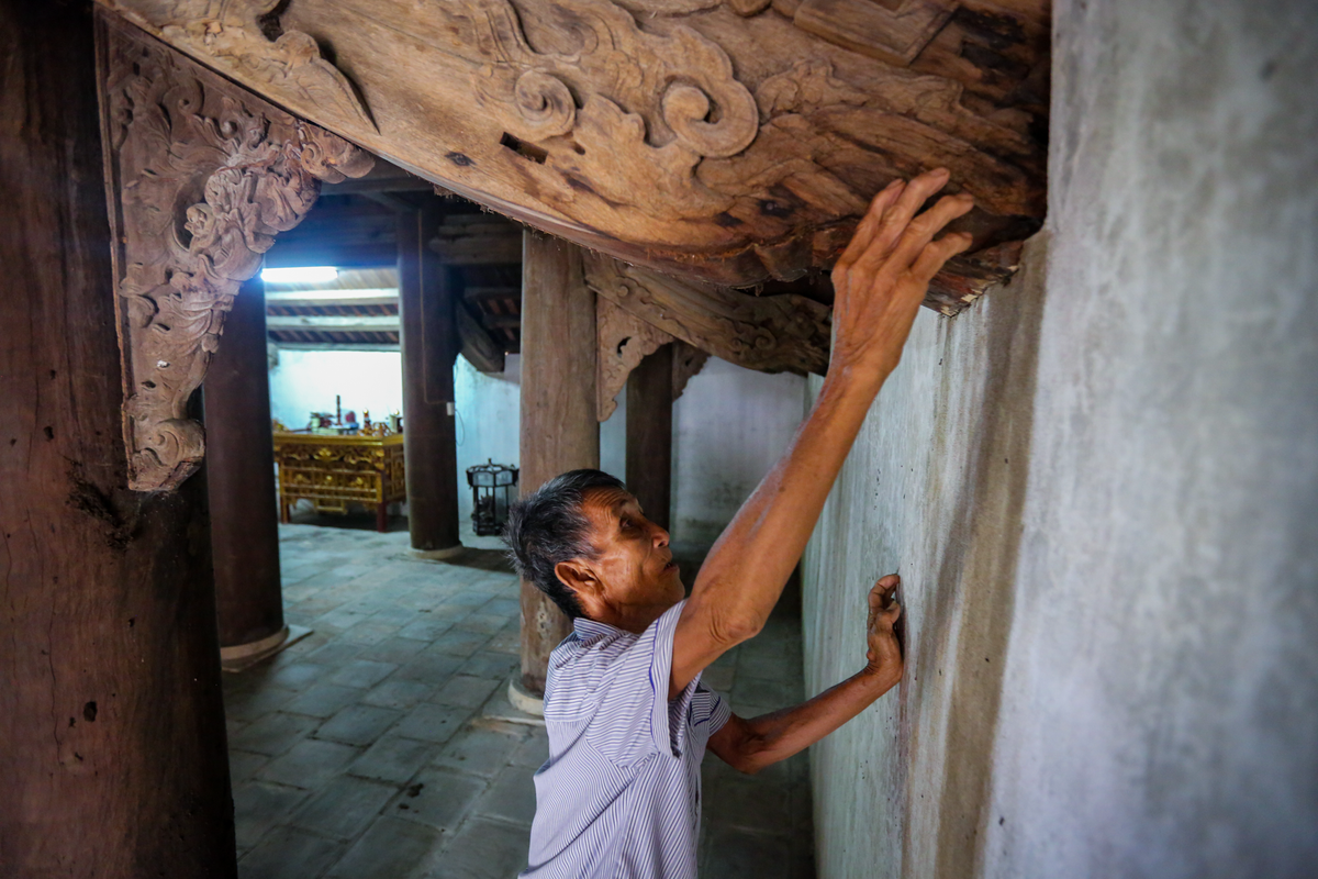 Theo ghi nhận của VTC News, nhà bái đường của ngôi đình có 7 gian, 32 chân cột (mỗi cột lớn chu vi đến 1,7m) thì một số cột đã xuất hiện rêu mốc, bị mối mọt ăn mòn theo thời gian.