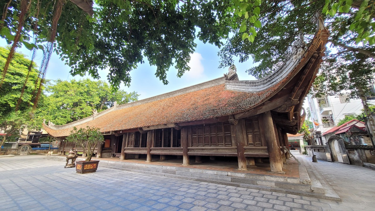 Mái đình ở đây có độ vươn xa thuộc hàng lớn nhất ở Việt Nam, có các đầu đao vút cong, tạo cảm giác uy nghi, bề thế.