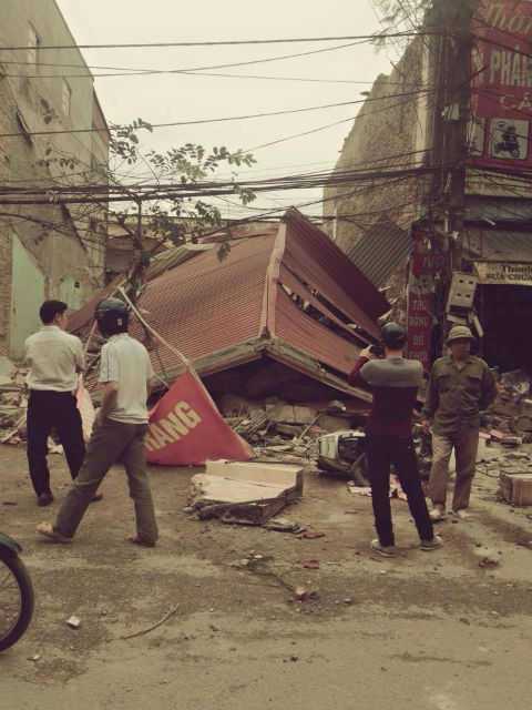 Ngay sau đó, toàn bộ ngôi nhà 3 tầng đổ sập xuống trong sự ngỡ ngàng của tất cả những người chứng kiến.
