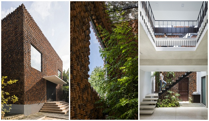 Một điểm đặc biệt nữa của ngôi nhà là gạch cháy - sản phẩm lỗi trong quá trình sản xuất được sống lại dưới một hình hài mới, hài hòa và thân thiện hơn với môi trường. (Ảnh: Hiroyuki Oki)