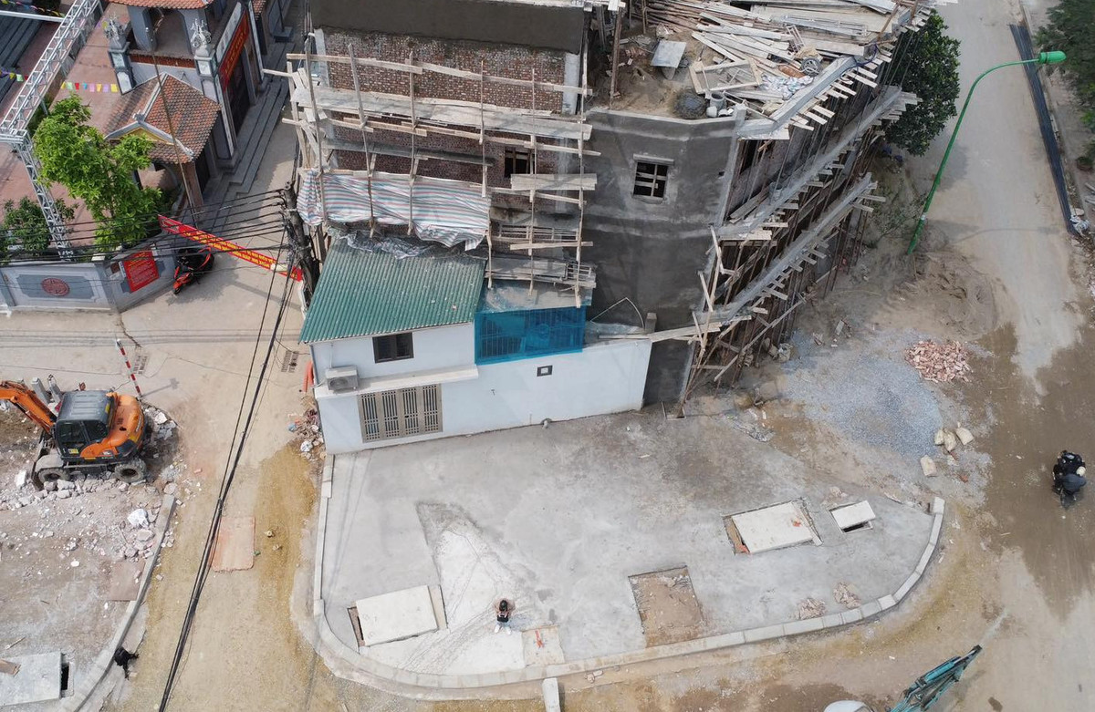 Mặc dù đang trong quá trình hoàn thiện, nhưng dọc hai bên tuyến đường đã xuất hiện một số căn nhà siêu mỏng, có hình dạng kỳ dị, méo mó.