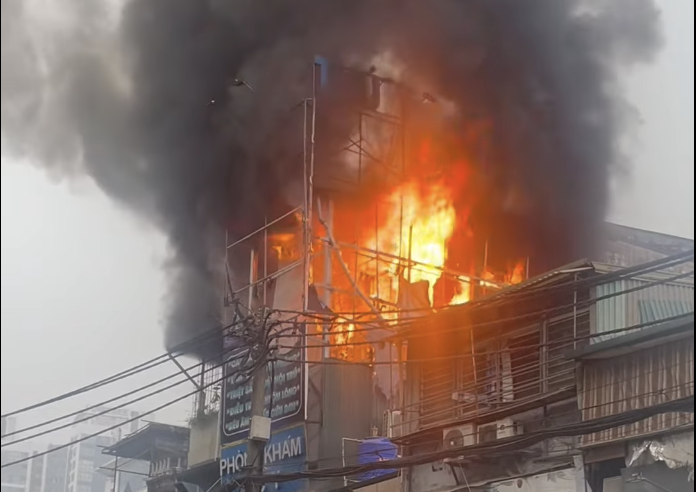 Thông tin ban đầu, đám cháy phát ra tại biển quảng cáo ở tầng 3 căn nhà. Ngọn lửa gặp chất dễ cháy nên bùng phát nhanh khiến người dân hoảng hốt.