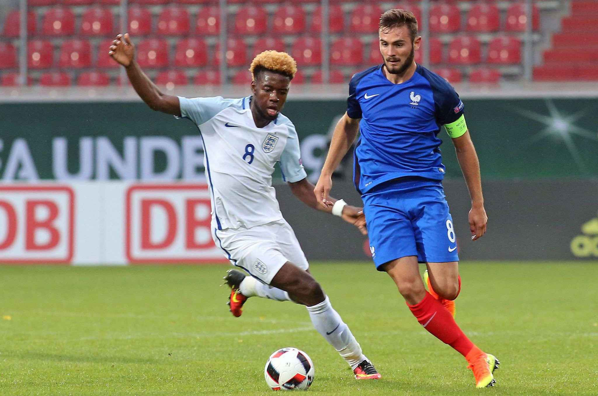 Lucas Tousart trong trận đấu với U20 Anh ở giải tứ hùng trước thềm World Cup U20.
