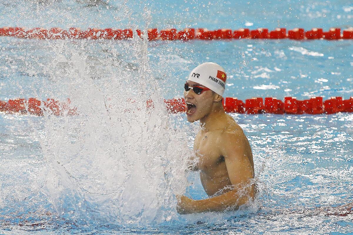 Kình ngư sinh năm 2001 giành chiến thắng ở chung kết nội dung 50m bơi ếch nam sau một cuộc đua nghẹt thở với 2 đối thủ cạnh tranh người Indonesia và Singapore.