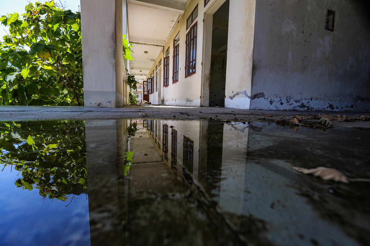 Sau hơn thập kỷ bỏ hoang, ngôi trường trở nên trơ trọi, cây cối bủa vây. Các dãy phòng học trống trơn, nhiều cửa sổ và cửa chính đã không còn.