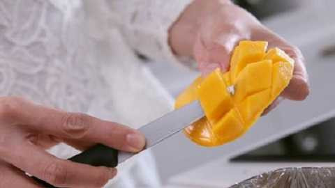 | Cắt xoài và gỡ từng miếng thịt xoài ra. |