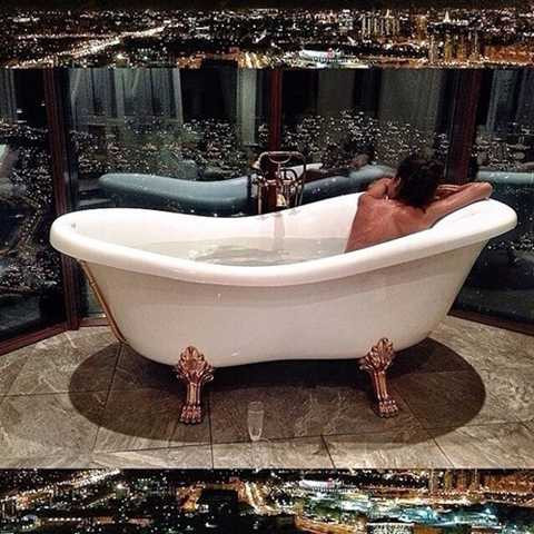 | Con nhà giàu Dubai không dùng bể bơi công cộng mà họ sở hữu bồn tắm siêu sang ngắm cảnh thành phố. |
