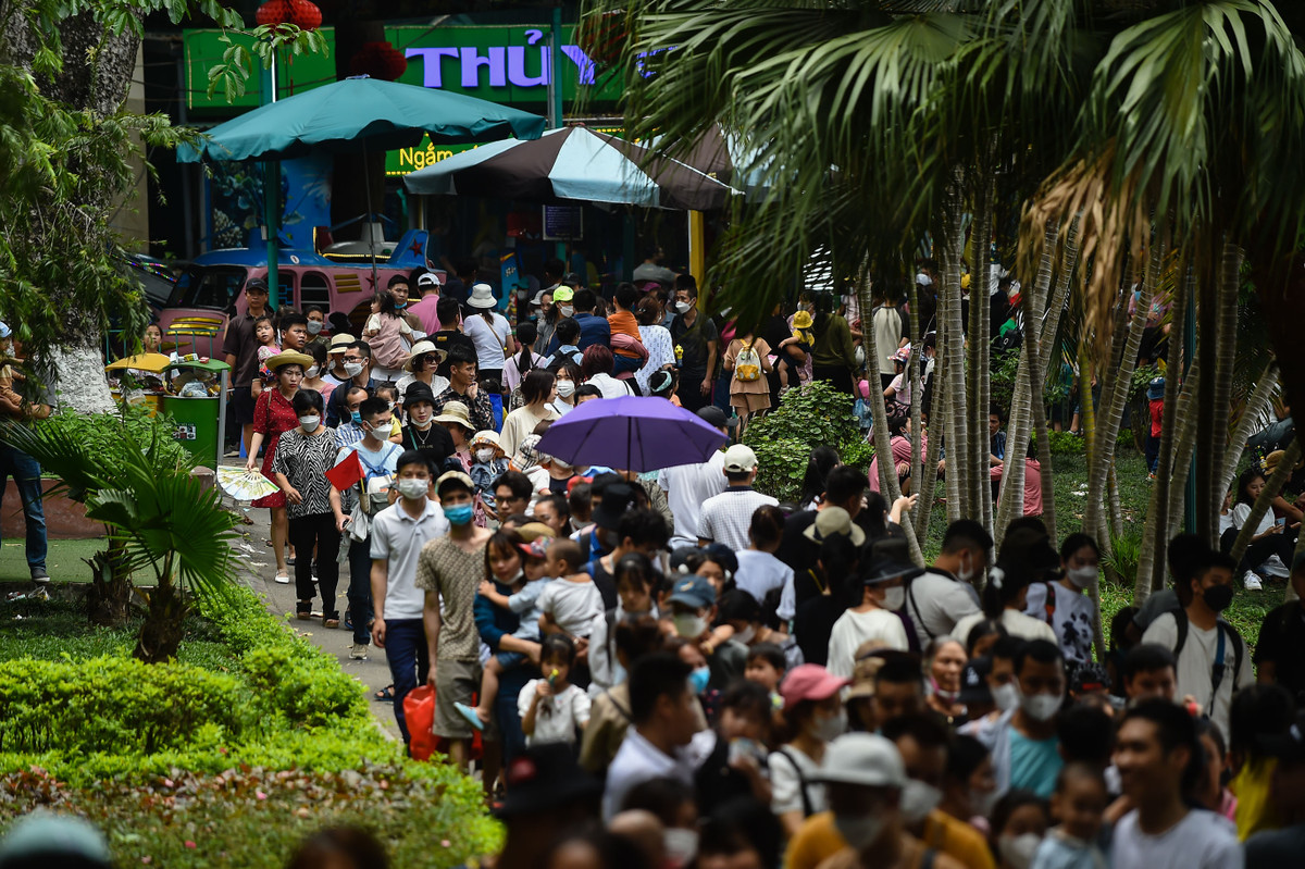 Chị Hoàng Thị Cúc (33 tuổi, Gia Lâm) cho biết: “Năm nay gia đình mình không về quê nên đã cho các con đến công viên Thủ Lệ để vui chơi. Dù đã lường trước được việc đông đúc nhưng mình không nghĩ đến mức như hôm nay”.