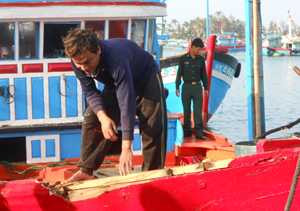 Vừa cho chiếc tàu công suất 320CV đầy thương tích do bị tàu Trung Quốc rượt đuổi, đập phá tại ngư trường Hoàng Sa cập đảo Lý Sơn, ngư dân Nguyễn Lộc, chủ tàu kiêm thuyền trưởng tàu cá QNg 96416 TS (thôn Tây xã An Vĩnh, huyện đảo Lý Sơn, Quảng Ngãi) đã nhanh chóng khắc phục, sửa chữa tàu để sớm bắt đầu chuyến đi biển mới với quyết tâm cao hơn.