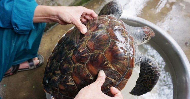 Ngày 12/3, ông Hồ Văn Thuận (trú thôn Thành Công, xã Quỳnh Long, huyện Quỳnh Lưu, Nghệ An) cho biết, vào 6h cùng ngày, trong lúc cùng anh trai là Hồ Văn Luận đánh bắt hải sản ở vùng biển Quỳnh Long, ông bắt được một con rùa biển quý hiếm.