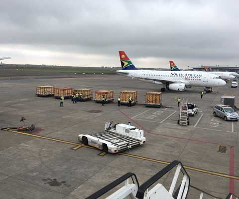| Các thùng chở thú chuyên dụng đang được đưa lên chuyến chuyên cơ thứ 7 - xuất phát từ Nam Phi lúc 15h ngày 16/12 |