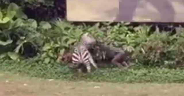 Vụ việc được ghi lại ở công viên Chimelong Safari, nơi có vườn thú với nhiều loài động vật được nuôi để phục vụ du khách tham quan, trong đó có ngựa vằn.