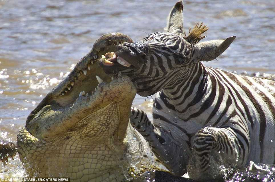 Ngựa vằn thoát hàm cá sấu sau nửa giờ vật lộn