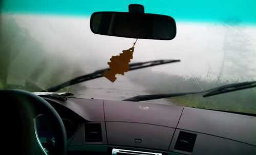Xe lao đi trong mưa bão. Ngoài trời gió tạt liên hồi, mưa quất ràn rạt vào kính lái gây cản tầm nhìn, ngay phía dưới là vùng biển đang động dữ dội với những cơn sóng bạc đầu.