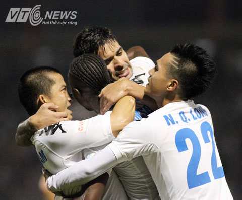 | Hà Nội T&T vui chiến thắng (Ảnh: Quang Minh) |