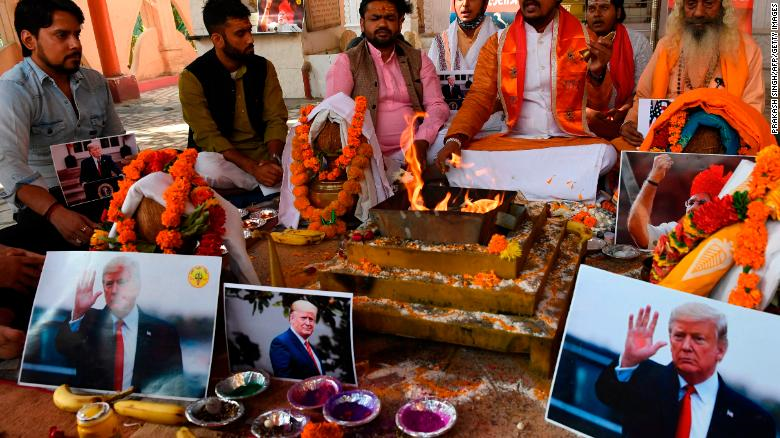 Cách đó hàng trăm dặm, tại Delhi, gần 20 thành viên của một nhóm được gọi là Sena Hindu cùng một thầy tu thực hiện nghi lễ và hát tặng chiến thắng của Tổng thống Trump. Họ mong ông tái đắc cử để kiểm soát các nước có mâu thuẫn với Ấn Độ là Pakistan và Trung Quốc.