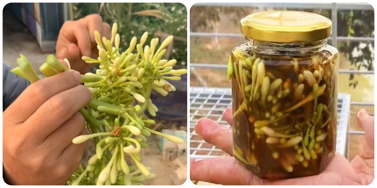 Hoa đu đủ đực ngâm mật ong: 200 gam hoa đu đủ đực tươi, 600 gam mật ong, 1 lọ thủy tinh. Đu đủ đực rửa sạch, để ráo nước hoàn toàn. Bỏ hoa đu đủ đực vào lọ thủy tinh, đổ mật ong vào, đẩy kín lọ. Để nơi khô ráo ở nhiệt độ 21 -27 độ C. Thời gian ngâm khoảng 1 – 2 tháng. Mỗi lần dùng 2 thìa cafe, uống 2 lần ngày.