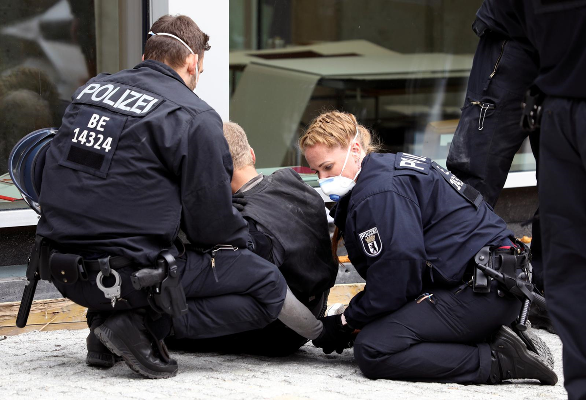 Cảnh sát Đức cho biết trên Twitter rằng, họ đã bắt hơn 100 người. Nhiều người biểu tình cố gắng giữ khoảng cách, chỉ ngồi dưới đất và đeo khẩu trang, song nhiều người trong số đó tụ tập, co cụm lại.