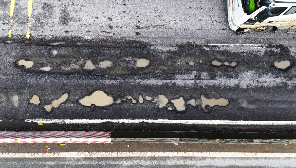 Cận cảnh ổ gà chi chít trên tuyến quốc lộ 1 qua Bình Định.