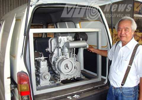 Ông chỉ chiếc máy trắng phau màu nhôm, như vừa mới ra lò và bảo đó là cái máy phát điện. Ông bảo rằng, mùa hè mất điện nhiều quá, mà máy phát điện bán ngoài thị trường công suất nhỏ, không chạy được hàn, nên ông phải sáng chế ra chiếc máy phát điện di động. Chiếc máy có công suất rất lớn, lại có thể vận chuyển di động bằng ôtô, nên rất thuận tiện.