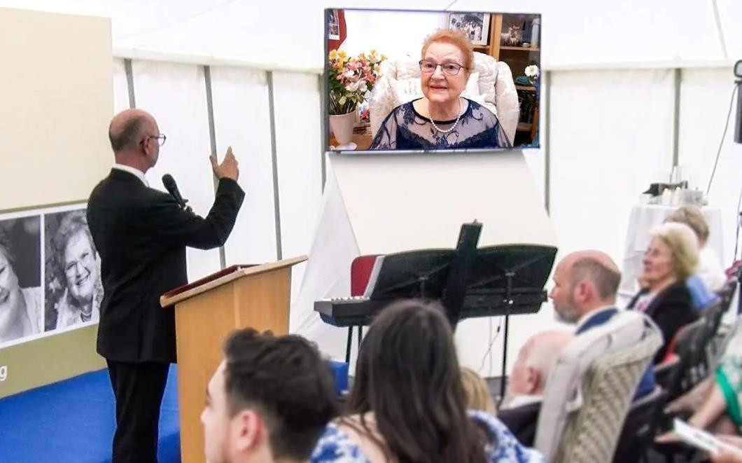 Marina Smith qua đời tháng 6 năm nay ở tuổi 87. Bà đã xuất hiện đầy bất ngờ ngay sau lễ hỏa táng ngày 29/7. Bà có bài phát biểu ngắn gọn về cuộc đời, tâm linh và trả lời câu hỏi của người thân tham gia lễ viếng.