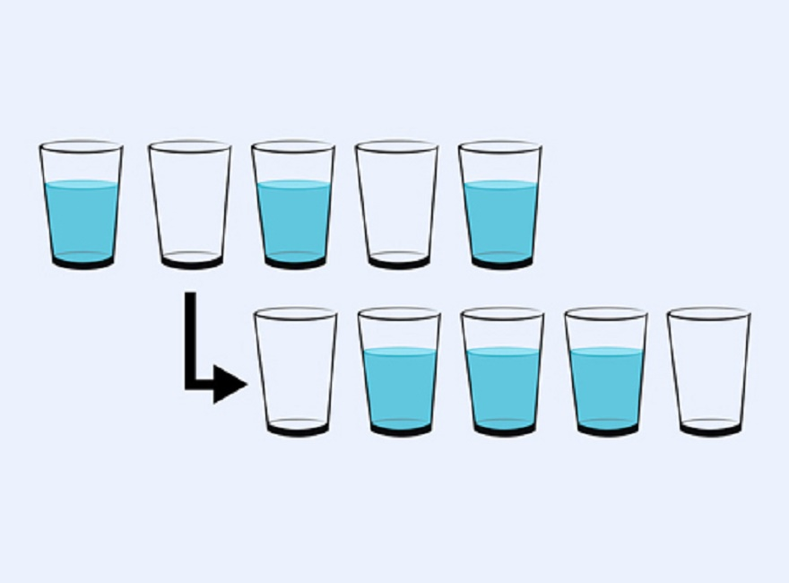 Chỉ được phép di chuyển một chiếc cốc, bạn làm cách nào để hàng phía trên đúng theo thứ tự như hàng dưới?
