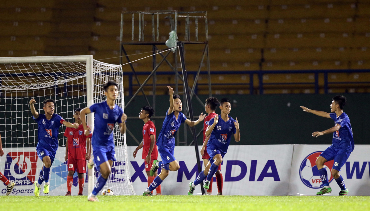 U15 SHB Đà Nẵng (áo xanh) đánh bại U15 PVF ở vòng bảng với tỷ số 3-2