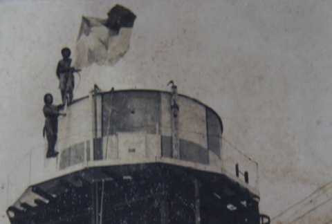 “Lúc ấy tôi chả nghĩ gì hết ấy, chỉ nghĩ mình sẽ chạy ra, sẽ buộc cờ cho chắc”, ông Lãi cười cho biết.