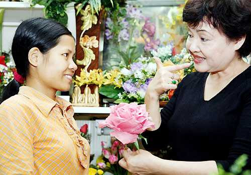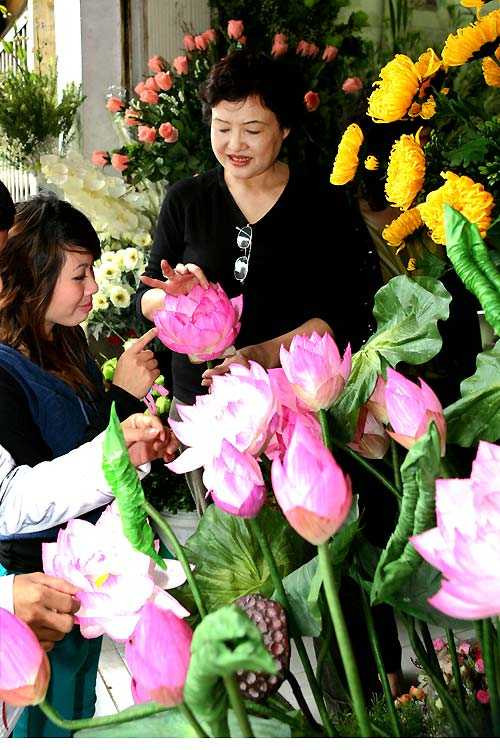 Những người khách quen ra sắm hoa Tết. Không cần phải diễn tả một cách khó khăn yêu cầu của mình, chỉ một câu ngắn gọn: “Cô Hạnh ơi, cho cháu 2 lọ phòng khách, 1 lọ phòng ngủ”, thế là họ có thể tự tin mang về những lọ hoa thật đẹp và đầy sức sống dưới bàn tay “phù phép” của bà chủ Mai Hạnh. Với những ai còn lúng túng trước sự lựa chọn của mình, bà lại ân cần giảng giải tận tình về ý nghĩa của những loài hoa, cách trang trí hoa trong nhà cho hợp với phong thủy và không gian sống… Lúc này, tôi lại thấy bà am hiểu, “điêu luyện” không khác gì một nhà thực vật học, một kiến trúc sư hay thầy phong thủy...