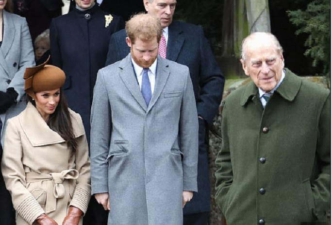 Hoàng thân Philip và vợ chống Harry. (Ảnh: Daily Mail)