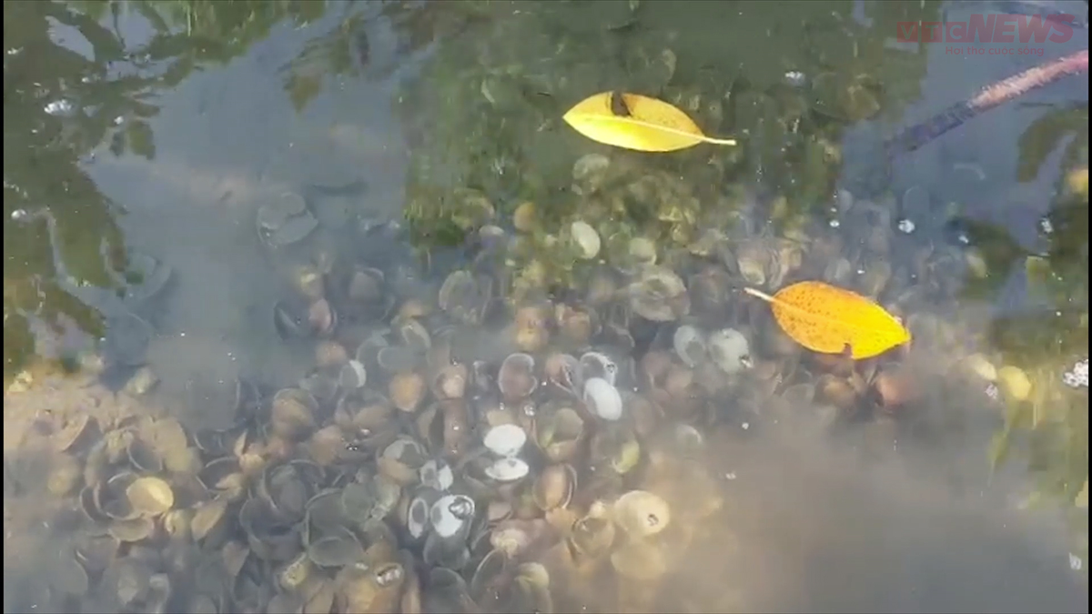 Người dân bất lực nhìn hàng chục tấn nghêu chết trắng trên sông Trường Giang
