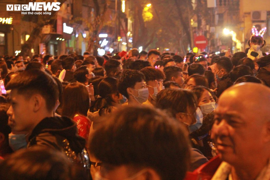 Tối 24/12, theo ghi nhận của PV VTC News, tại phố Nhà Chung, khu vực Nhà Thờ Lớn (Hà Nội) đông nghẹt người dân đến vui chơi, chào đón Giáng sinh.