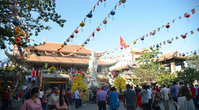 Lượng khách đến chùa dâng hương đông đúc. Đây là ngôi chùa nổi tiếng linh thiêng ở TP.HCM.