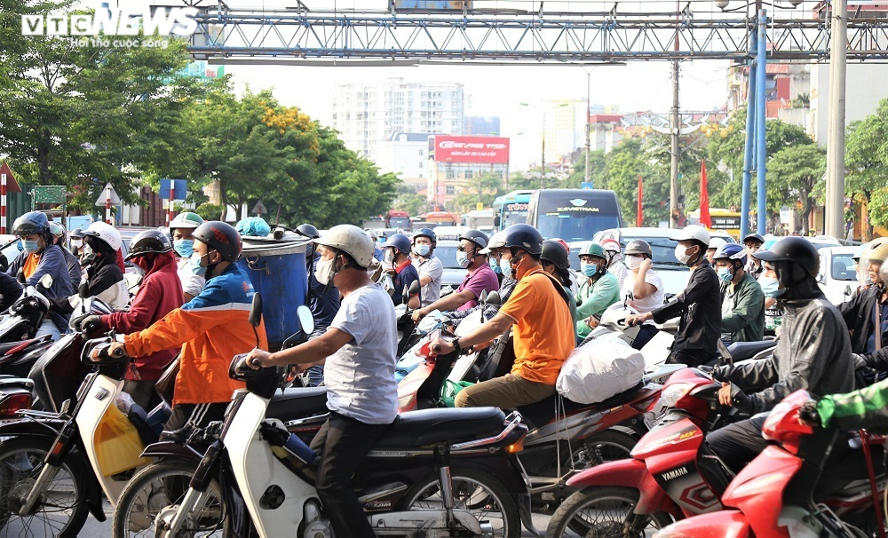 Đây là thời điểm người dân ùn ùn ra bến xe Nước Ngầm, bến xe Giáp Bát về quê nghỉ lễ và đi du lịch nên tuyến đường này ùn tắc sớm hơn thường ngày. Hàng nghìn ô tô, xe máy xếp hàng dài để chen chúc nhau vào bến xe.