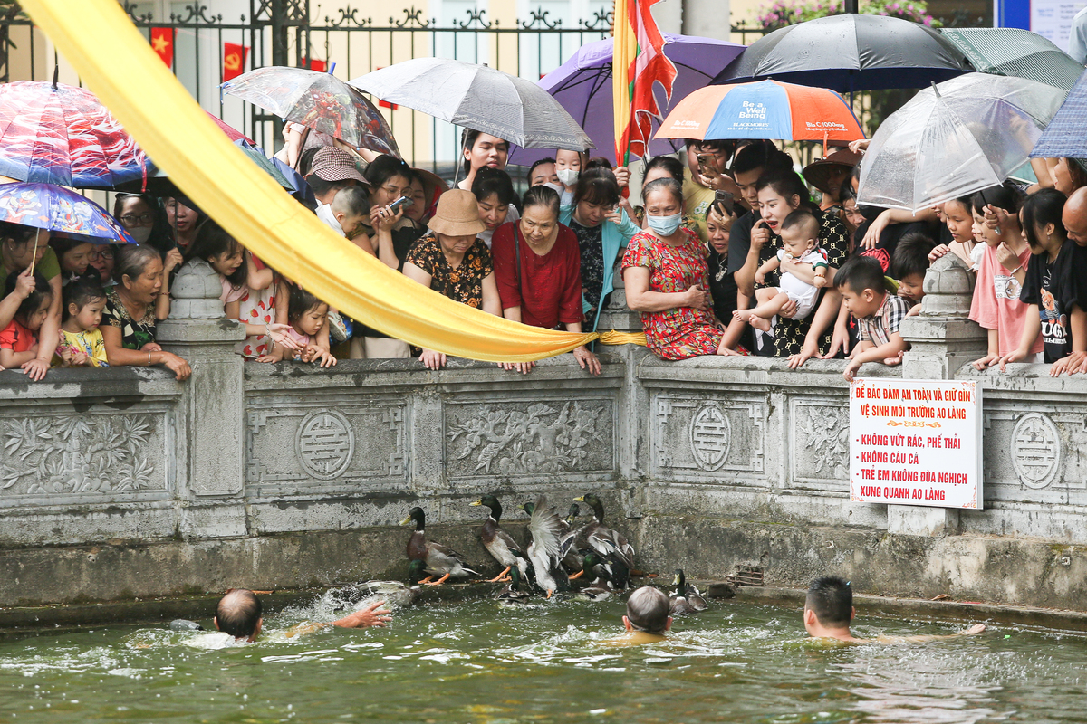 Năm nay có 10 con vịt được ban tổ chức thả xuống hồ. Phần thưởng cho người tham gia bắt vịt là chú vịt mà họ bắt thành công và khoản tiền thưởng do các mạnh thường quân ủng hộ.