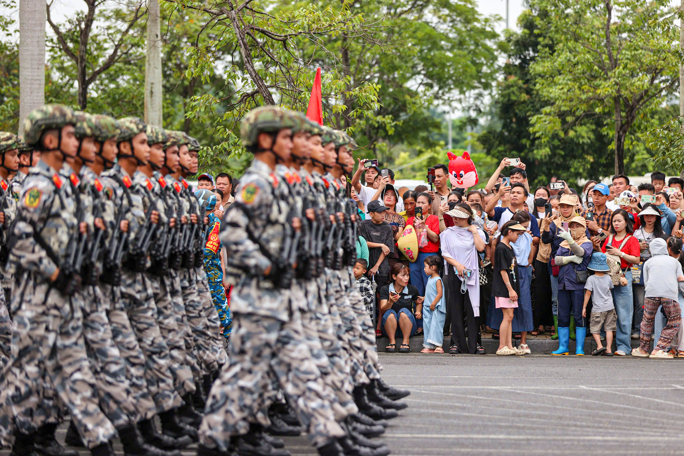 Tiếng trống dồn dập, hiệu lệnh vang lên dõng dạc, từng khối quân đội, dân quân… bước đều mạnh mẽ, khí thế. Người dân đứng hai bên đường chăm chú theo dõi, nhiều người không ngại nắng, tìm vị trí thuận lợi để có thể nhìn rõ đội hình.