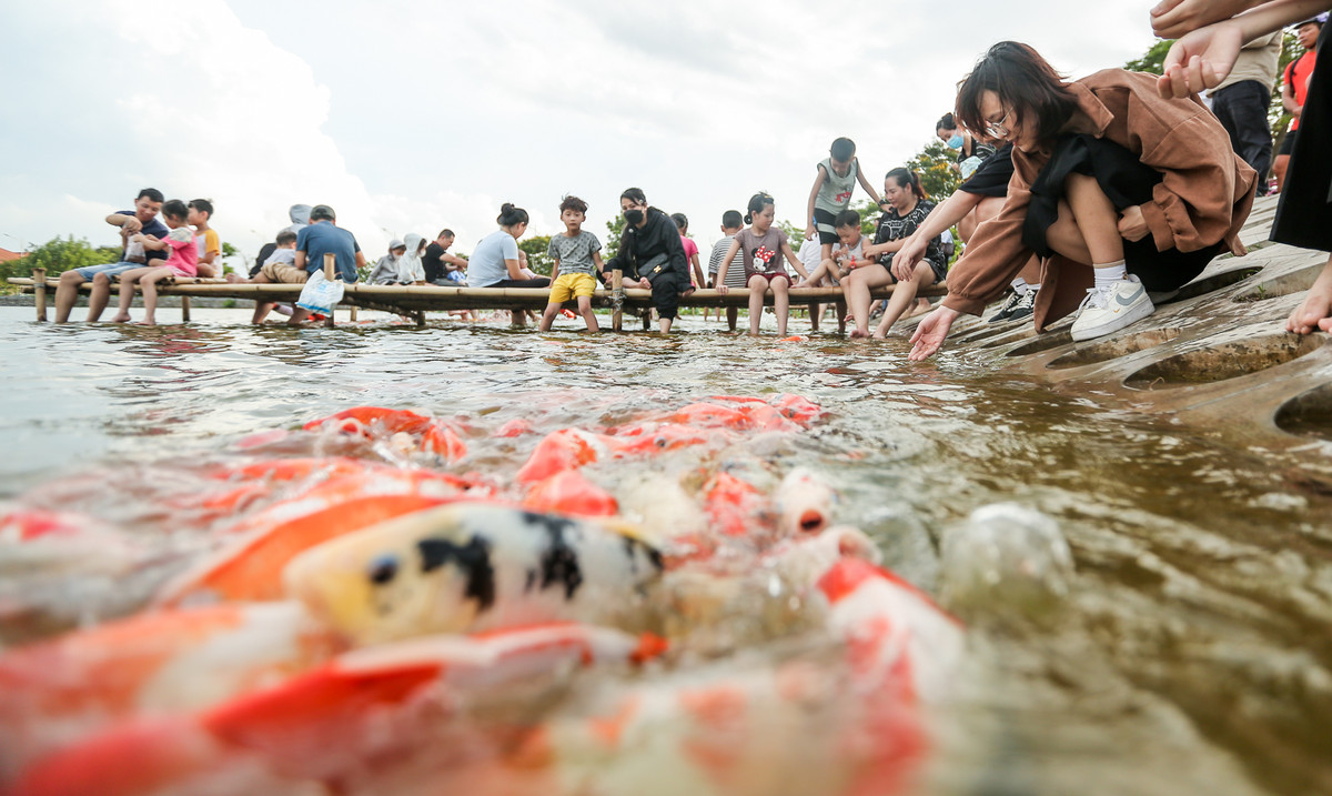 Sự xuất hiện của những chú cá Koi đã kích thích sự tò mò và thu hút đông đảo người dân, du khách đến tham quan, hóng gió. Giờ đây, du khách không chỉ được ngắm sen Tây Hồ mà còn có thêm nhiều hoạt động thú vị như cho cá Koi ăn.