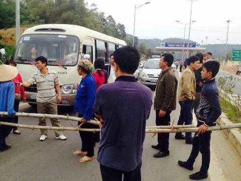 | Người dân dùng tre chắn đường cao tốc Nội Bài - Lào Cai (Ảnh: otofun) |