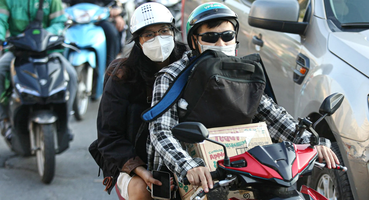 Nhiều em nhỏ mệt mỏi, ủ rũ ngồi sau xe của bố mẹ rời Thủ đô.