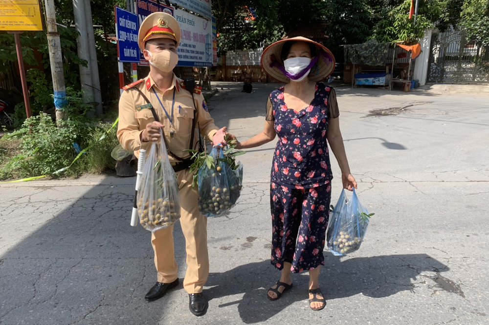 Người phụ nữ này mang các thùng nước đến chốt để ủng hộ, khi được cảm ơn và hỏi tên, chị bảo "Các anh không cần biết tên em đâu, em cũng chỉ là một người dân trong làng. Thấy các anh vất vả nên biếu mọi người vài thùng nước, mong các anh giữ gìn sức khỏe và mong dịch bệnh sớm qua đi để mọi người có thể trở về bên gia đình".