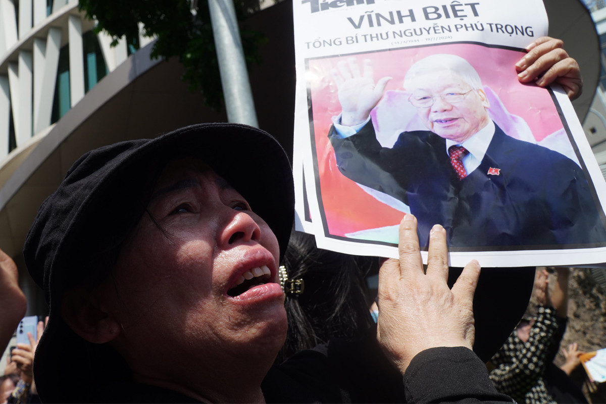 "Sáng nay tôi đưa mẹ ra viếng Tổng Bí thư Nguyễn Phú Trọng. Mẹ cũng khóc nhiều lắm. Cả hai mẹ con cứ thấy di ảnh Tổng Bí thư là nước mắt trào ra, không kìm nén được", chị Diệu Bình (20 tuổi, Quận 11) cho hay.