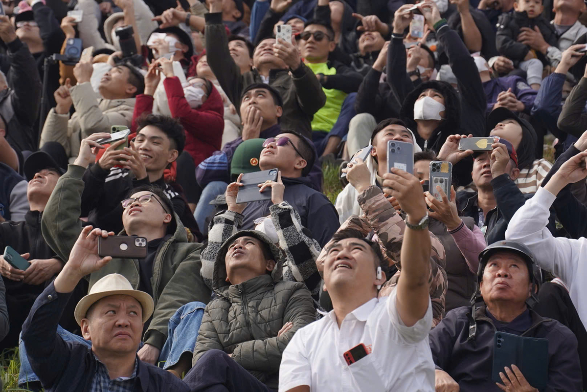 Chị Mai (48 tuổi, ở Long Biên, Hà Nội) cho biết, chị cùng con gái đến đây từ khoảng 6h và rất háo hức ngóng chờ thời khắc sự kiện diễn ra. Còn ông Tuấn (Ba Đình, Hà Nội) cảm thấy "vô cùng háo hức", "đến đây từ sáng sớm để chờ xem tận mắt những chiếc máy bay chiến đấu".